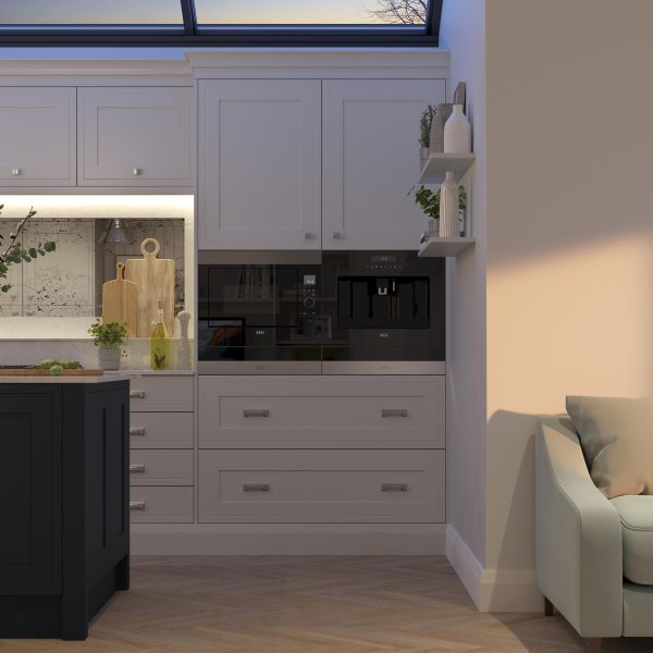 Extend your kitchen design into your dining area with an exquisite drinks dresser featuring oak glass holders, bottle racks and bi-fold doors for a touch of luxury.