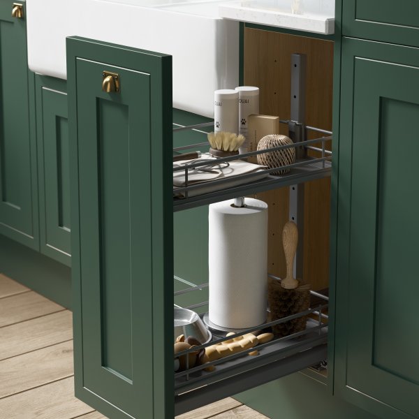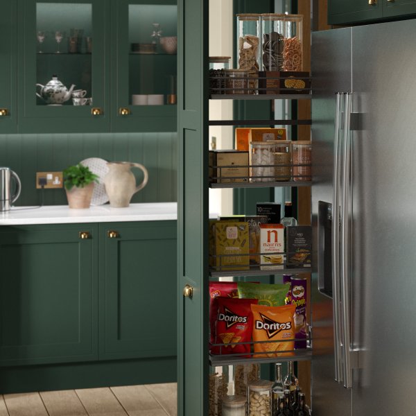 Tall narrow spaces can be maximised with a VS TAL® Larder and easily access everyday essentials with a VS COR® Flex corner pull-out.