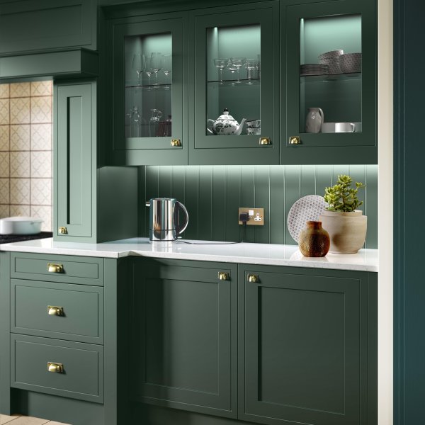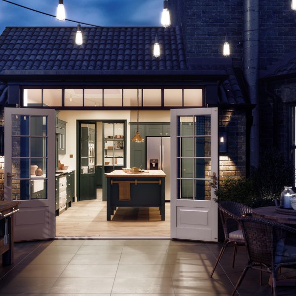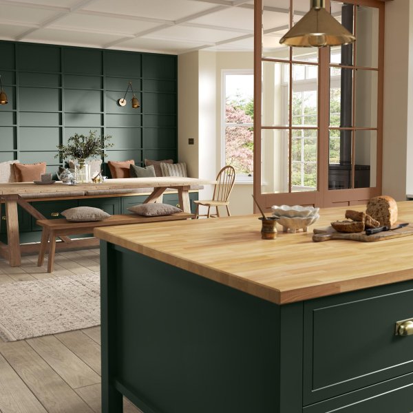 Extend your kitchen design into your dining area with an exquisite drinks dresser featuring oak glass holders, bottle racks and bi-fold doors for a touch of luxury.