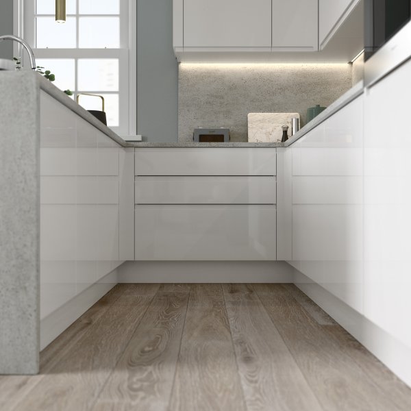 Make the ultimate contemporary style statement with the chic, handleless design of Strada Gloss. Featuring an exceptional mirror-like finish, choose from a selection of on-trend colours to create a stylish space which can extend to other areas beyond the kitchen.