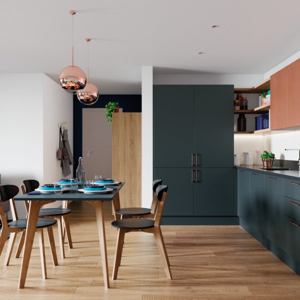 The smooth matte painted finish and understated design of Zola Matte creates the perfect base for a seamless, linear look including a handleless rail option.